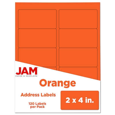 JAM Paper Laser/Inkjet Shipping Address Labels, 2" x 4", Orange, 10 Labels/Sheet, 12 Sheets/Pack (302725784)