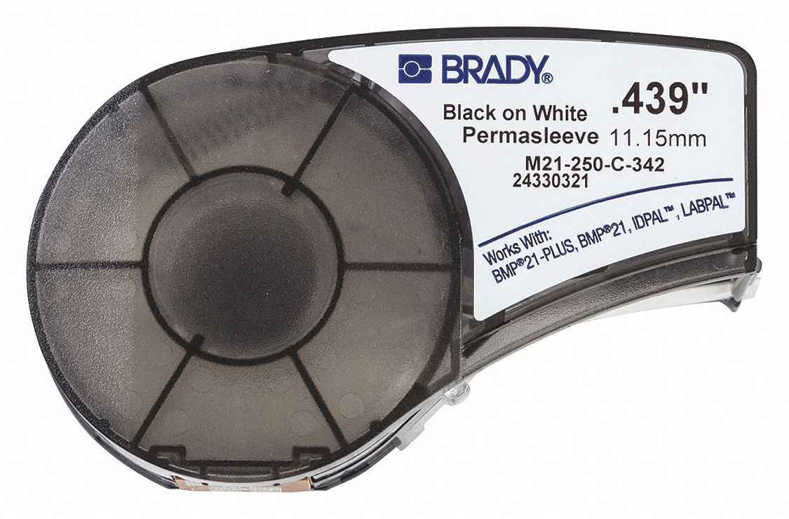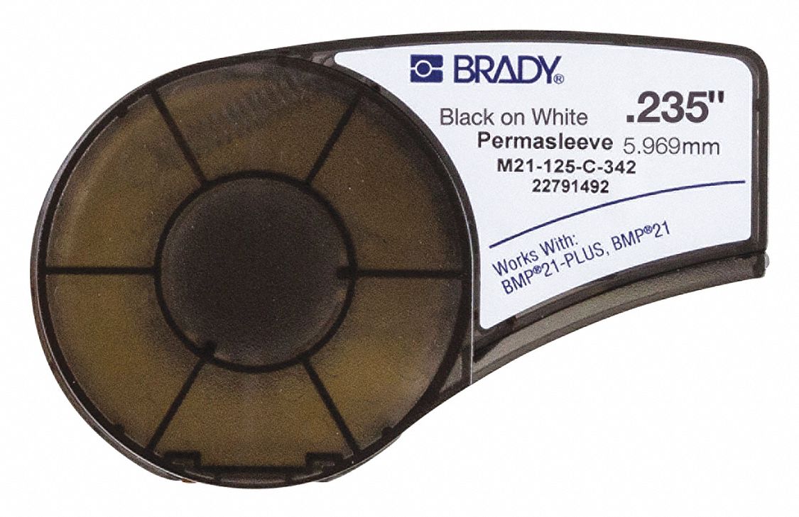 Brady Series Label Cartridge 0.25 in. W B342 PermaSleeve Heat-Shrink Polyolefin, Black on White Labels